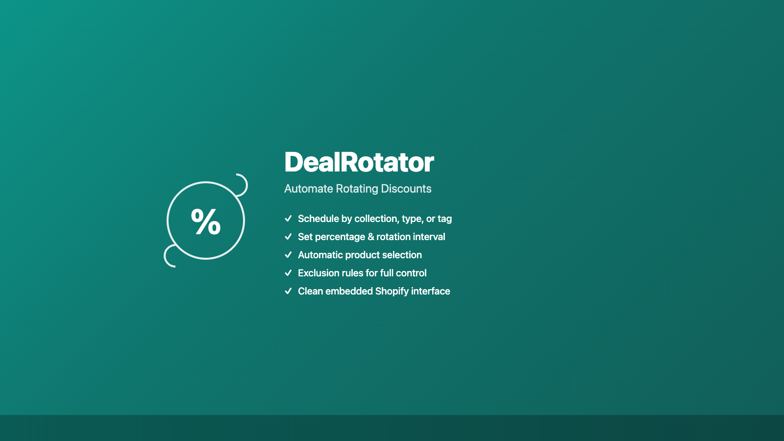 Set it once and let DealRotator rotate discounts by collection, product type, or tag on schedule.